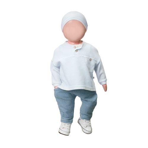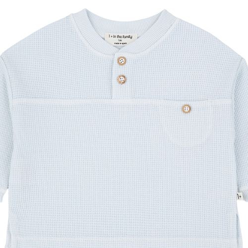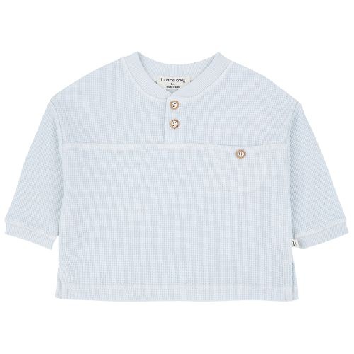 Shop de 1+ in the family amorgos misty-blue trui online bij Labels for Little Ones. Deze fijne sweater heeft een henley-look met houten knoopjes bij de hals, waardoor aan- en uitkleden extra gemakkelijk gaat. De trui is gemaakt van lichte waffle jersey, wat zorgt voor een subtiele textuur en zachte feel. Met smalle geribde boorden, een naad over de borst voor een speels detail en een klein borstzakje met houten knoopje is dit een prachtig, verzorgd babytruitje.
