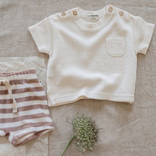 Shop de 1+ in the family Delion ecru s.sleeve t-shirt online bij Labels for Little Ones. Een t-shirt van zachte wafelstof in een natuurlijke kleur ecru. De stof voelt comfortabel aan en heeft een subtiele textuur. Een heerlijke basic met een zomerse, natuurlijke uitstraling.