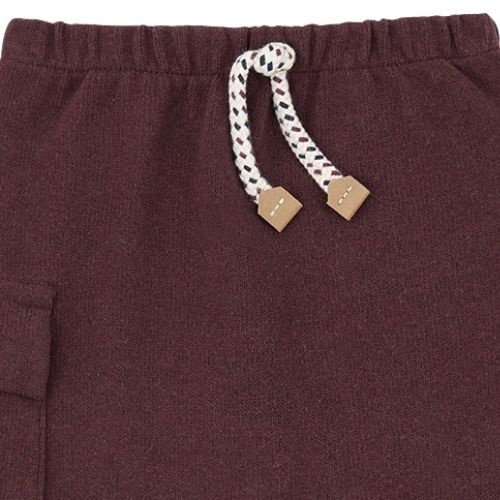 Shop de 1+ in the family malte pants melanzana broek online bij Labels for Little Ones. Deze bordeauxrode baggy cargo broek heeft een zakje op het rechterbovenbeen en een stoer strikdetail. De omgeslagen broekspijpjes en zachte stof zorgen voor een comfortabele fit.