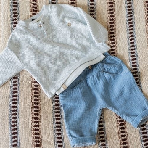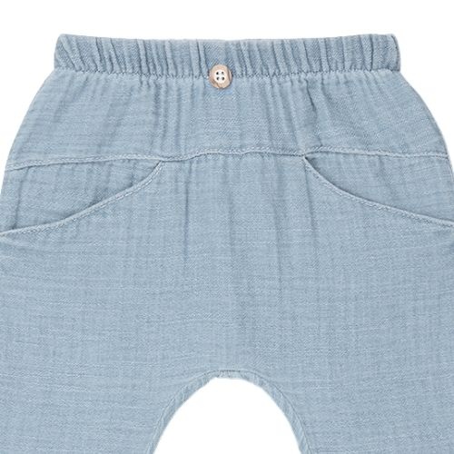 Shop de 1+ in the family Zante denim pants broek online bij Labels for Little Ones. Deze wijde broek van soepele katoenen denim muslin heeft een natuurlijke, luchtige look. Met sierknoopje op de taille, twee steekzakken aan de voorkant en omgeslagen broekspijpjes oogt dit model zowel stoer als comfortabel. Een stijlvolle basis voor zomerse outfits.