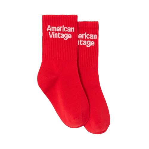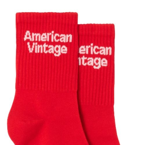 Shop de American Vintage clypsun chaussettes ladybird sokken online bij Labels for Little Ones. Deze mooie sokken zijn uitgevoerd in een rode kleur coccinelle en hebben op de hals van de sok een witte tekstprint ‘american vintage’. Deze sokken zijn eindel...