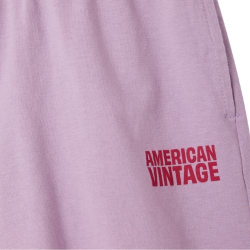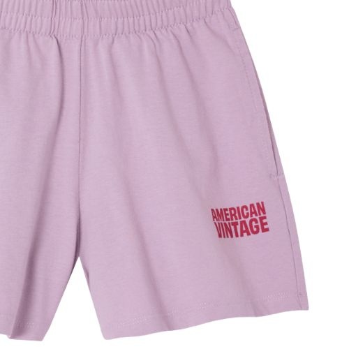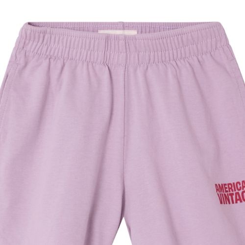 Shop de American Vintage gixy short lilas pastel online bij Labels for Little Ones. Deze mooie korte broek van sweatstof is uitgevoerd in een paarse kleur lilas en heeft op de broekspijp een tekstprint ‘american vintage’. Deze korte broek is eindeloos te