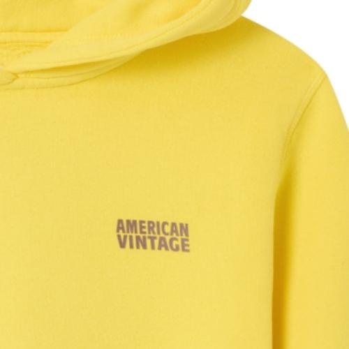 Shop de American Vintage izubird kids hoodie acacia vintage trui online bij Labels for Little Ones. Deze mooie sweater met capuchon is uitgevoerd in een gele kleur en heeft op de borst een kleine grijze tekstprint ‘american vintage’. Deze hoodie is eindel...