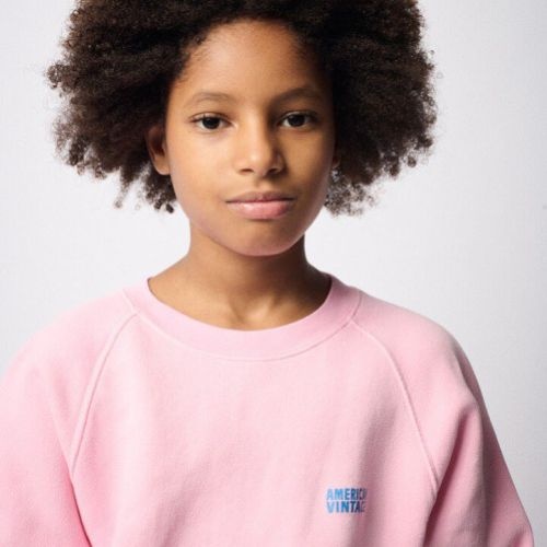 Shop de American Vintage izubird sweat ml col rond barbe a papa vintage trui online bij Labels for Little Ones. Deze mooie sweater is uitgevoerd in een lichte roze kleur en heeft op de borst een kleine blauwe tekstprint ‘american vintage’. Deze sweater is...