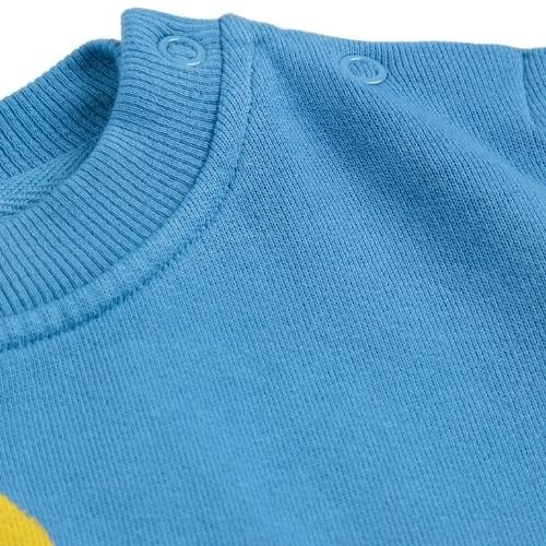 Shop de Bobo Choses baby striped duck sweatshirt blue trui online bij Labels for Little Ones. Deze sweater is uitgevoerd in een frisse blauwe kleur met op de voorkant een grote print striped duck van een gele eend met groene strepen. Op de schouder zitten knoopjes voor extra gemak met aan- en uitkleden. De Bobo trui heeft een comfortabele fit door de fijne pasvorm en zachte biologische katoenen stof.