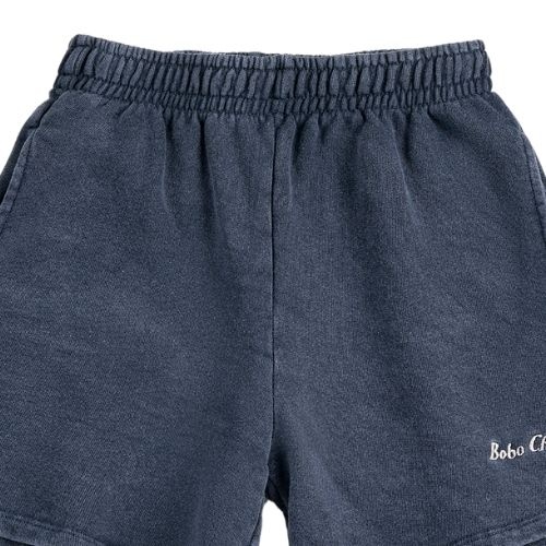 Shop de Bobo Choses bermuda shorts online bij Labels for Little Ones. Deze mooie korte broek is uitgevoerd in een donkerblauwe kleur en heeft op de onderkant van een broekspijp een witte tekstprint ‘bobo choses’. Een comfortabele short door de fijne pasvo...