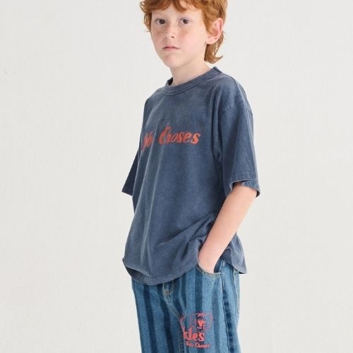 Shop de Bobo Choses tshirt online bij Labels for Little Ones. Dit leuke shirt met korte mouwen is uitgevoerd in een donkerblauwe kleur en heeft mooie rode tekstprint ‘Bobo Choses’ op de voorkant. Een comfortabele shortsleeve door de fijne pasvorm en zachte biologische katoenen stof.