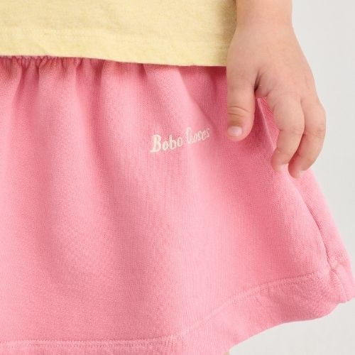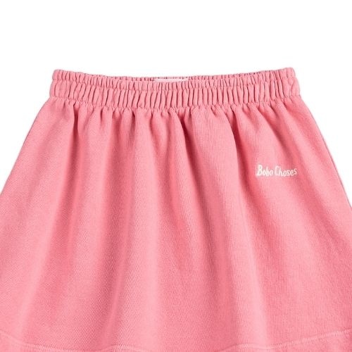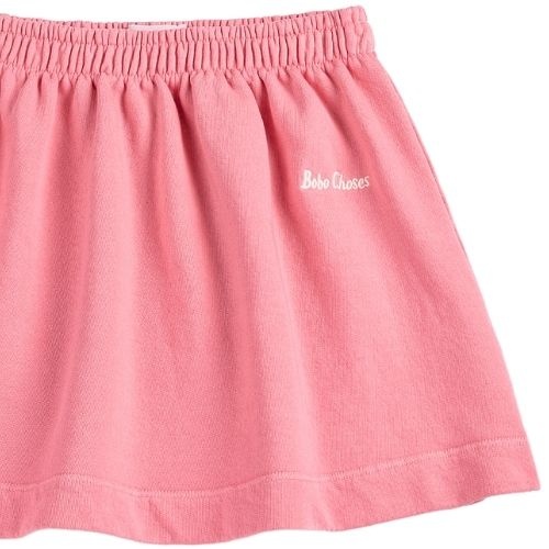 Shop de Bobo Choses fleece skirt online bij Labels for Little Ones. Deze mooie rok is uitgevoerd in een roze kleur en heeft een kleine print met merknaam. Het rokje is geplooid vanaf de tailleband met elastiek. Een comfortabele rok door de fijne pasvorm en zachte, soepele stof met biologisch katoen.