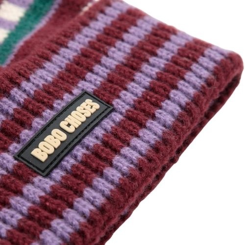 Shop de Bobo Choses bobo choses jacquard beanie purple muts online bij Labels for Little Ones. Deze vrolijke muts is uitgevoerd in een multicolor dessin met een jacquard print en een pompon bovenop. De muts heeft een omgeslagen boord met een gestreepte print en een tekstprint ‘bobo choses’. De Bobo muts heeft een comfortabele fit door de fijne pasvorm en een zachte, warme uitstraling door de stofsamenstelling.