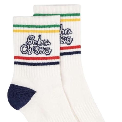 Shop de Bobo Choses BC short socks - sokken online bij Labels for Little Ones. Een vrolijk paar sokken uitgevoerd in een witte kleur met op de hals van de sok de tekstprint ‘bobo choses’ in het blauw. De sokken hebben een comfortabele fit door de fijne pa...
