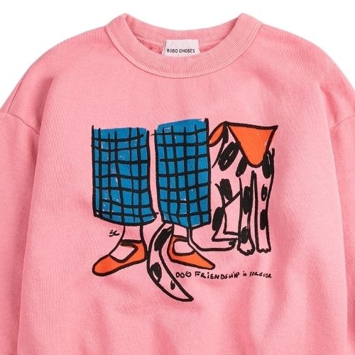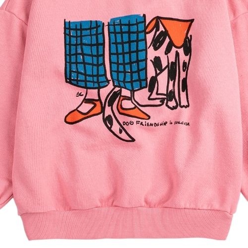 Shop de Bobo Choses Dog Friendship sweatshirt online bij Labels for Little Ones. Deze vrolijke sweater is uitgevoerd in een roze kleur met op de voorkant een grote print met hond en de tekstprint ‘Dog friendship is forever’. Een comfortabele trui door de