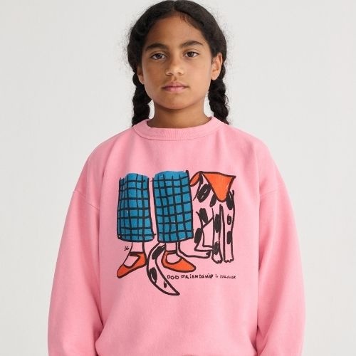 Shop de Bobo Choses Dog Friendship sweatshirt online bij Labels for Little Ones. Deze vrolijke sweater is uitgevoerd in een roze kleur met op de voorkant een grote print met hond en de tekstprint ‘Dog friendship is forever’. Een comfortabele trui door de fijne pasvorm en zachte biologische katoenen stof.