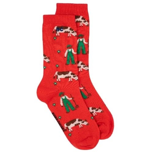 Shop de Bobo Choses farm adventure all over long socks online bij Labels for Little Ones. Een vrolijk paar sokken uitgevoerd in een rode kleur met een all-over Farm Adventure print met boerderij thema. De sokken hebben een comfortabele fit door de fijne pasvorm en zachte stof samenstelling met biologisch katoen.