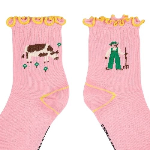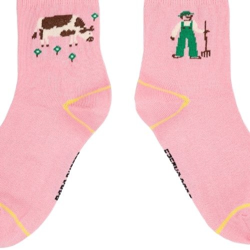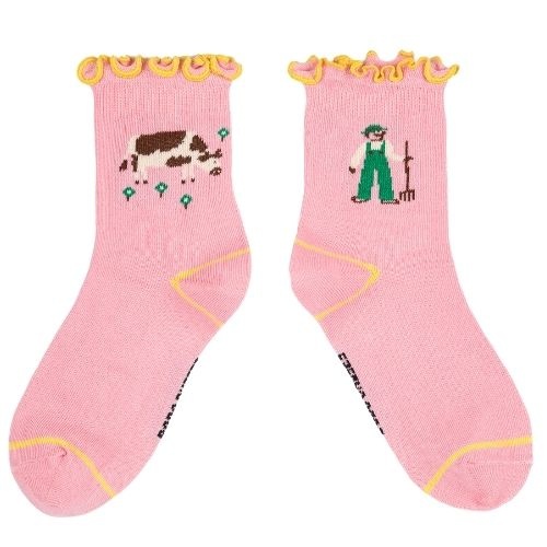 Shop de Bobo Choses farm adventure ruffled short socks - sokken online bij Labels for Little Ones. Een vrolijk paar sokken uitgevoerd in een roze kleur met een Farm Adventure print met boerderij thema en afgewerkt met een roezeltje. De sokken hebben een