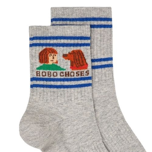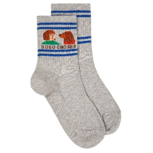 Shop de Bobo Choses friends in a pickle short socks - sokken online bij Labels for Little Ones. Een vrolijk paar sokken uitgevoerd in een grijze kleur met op de hals van de sok een print met een hondje. De sokken hebben een comfortabele fit door de fijne