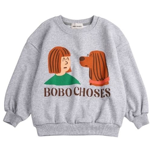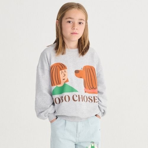 Shop de Bobo Choses Friends in a pickle sweatshirt online bij Labels for Little Ones. Deze vrolijke sweater is uitgevoerd in een lichtgrijze kleur met op de voorkant een grote grappige print en tekstprint ‘Bobo Choses’. Een comfortabele trui door de fijne pasvorm en zachte biologische katoenen stof.