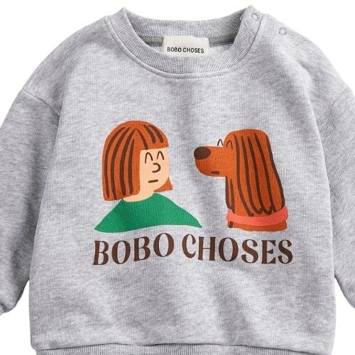 Shop de Bobo Choses friends in a pickle sweatshirt - trui online bij Labels for Little Ones. Deze vrolijke sweater is uitgevoerd in een lichtgrijze kleur met op de voorkant een grote grappige print en tekstprint ‘Bobo Choses’. De baby sweater heeft drukkn...