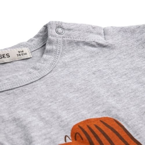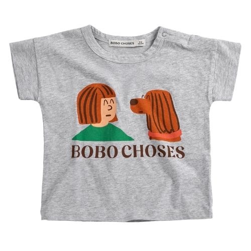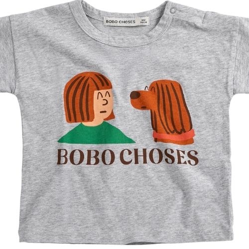 Shop de Bobo Choses Friends in a pickle tshirt online bij Labels for Little Ones. Dit leuke shirt met korte mouwen is uitgevoerd in een grijze kleur met een grappige print op de voorkant en een kleine tekstprint ‘bobo choses’. De baby tee heeft drukknoopj...