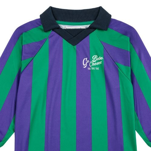 Shop de Bobo Choses Go Bobo sporty polo shirt online bij Labels for Little Ones. Deze toffe tee is uitgevoerd in een blauwe en groene kleur en heeft op een borst een witte tekstprint ‘go bobo choses tic tac toe’. Het poloshirt heeft een sporty pasvorm en