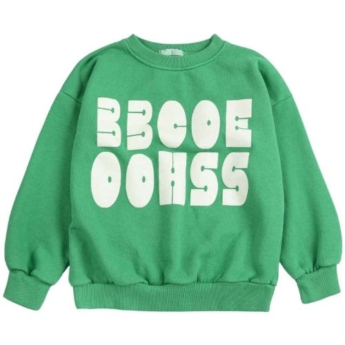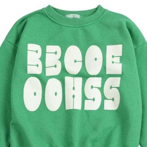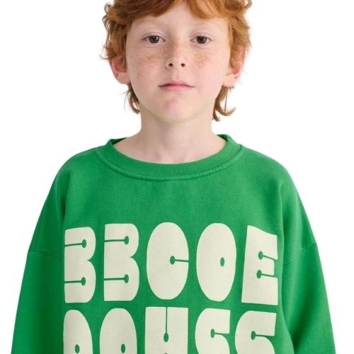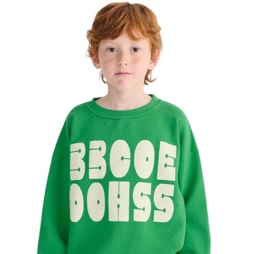 Shop de Bobo Choses Modern sweatshirt online bij Labels for Little Ones. Deze vrolijke sweater is uitgevoerd in een groene kleur met op de voorkant de merknaam in het wit. Een comfortabele sweat met dropshouder model van zachte biologische katoenen stof.