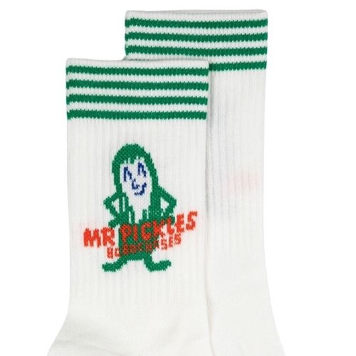 Shop de Bobo Choses mr pickles short socks - sokken online bij Labels for Little Ones. Een vrolijk paar sokken uitgevoerd in een witte kleur met op de hals van de sok een print met een augurk. De sokken hebben een comfortabele fit door de fijne pasvorm en zachte stof samenstelling met biologisch katoen.