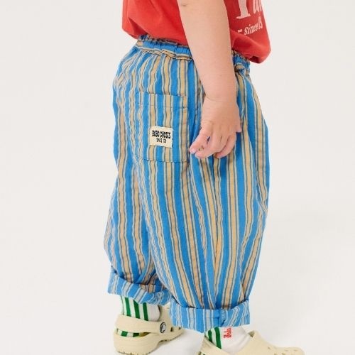 Shop de Bobo Choses New Hairline woven pants online bij Labels for Little Ones. Deze vrolijke broek is uitgevoerd met een gestreept design in blauw en lichtbruin. Een comfortabele chino door de fijne pasvorm en zachte en soepele katoenen stof.