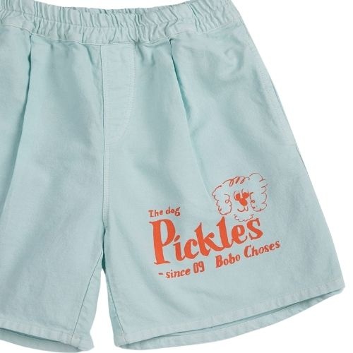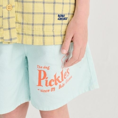 Shop de Bobo Choses Pickles The Dog woven Bermuda online bij Labels for Little Ones. Deze mooie korte broek is uitgevoerd in zachte biologische katoen in lichtblauwe kleur met rode print van een hondje en merknaam. Een comfortabele short door de fijne pasvorm en zachte biologische katoenen stof.