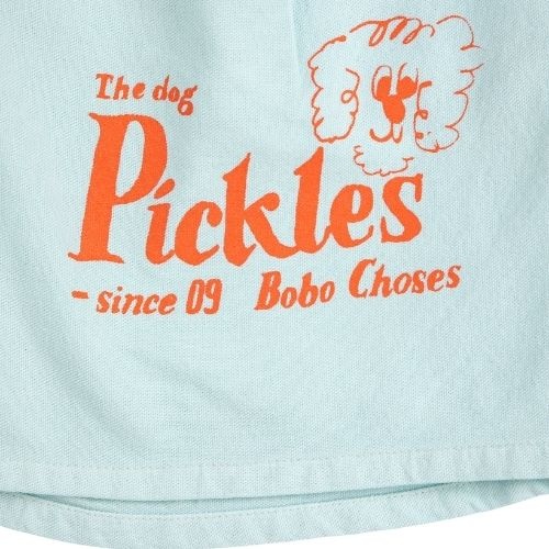 Shop de Bobo Choses Pickles The Dog woven Bermuda online bij Labels for Little Ones. Deze mooie korte broek is uitgevoerd in zachte biologische katoen in lichtblauwe kleur met rode print van een hondje en merknaam. Een comfortabele short door de fijne pas...