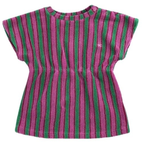 Shop de Bobo Choses striped terry cloth dress online bij Labels for Little Ones. Deze leuke zomerjurk is uitgevoerd in zachte badstof met strepen patroon in roze en groen. Het baby jurkje is een beetje getailleerd. Een comfortabel zomerjurkje door de fijne pasvorm en zachte, soepele katoenen stof.