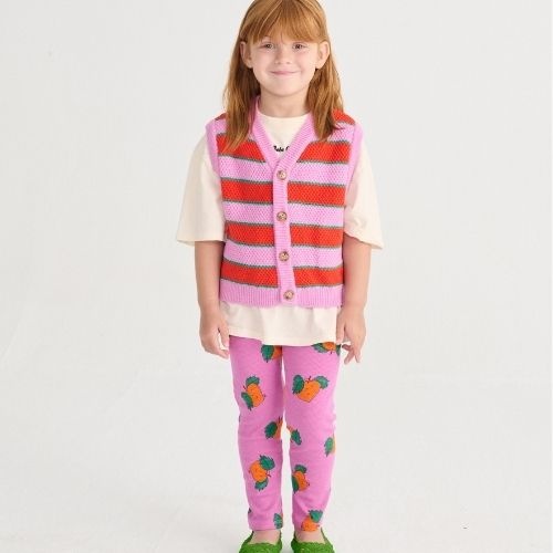 Shop de Bobo Choses tangerine all over leggings online bij Labels for Little Ones. Deze leuke legging is uitgevoerd in een paarse kleur en heeft een all over Tangerine fruit print met mandarijntjes. Een comfortabele broek door de fijne pasvorm en zachte biologische katoenen stof.