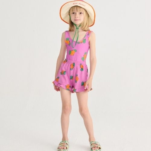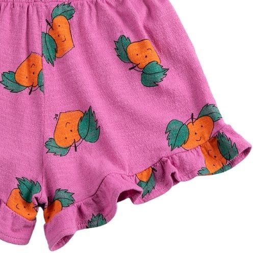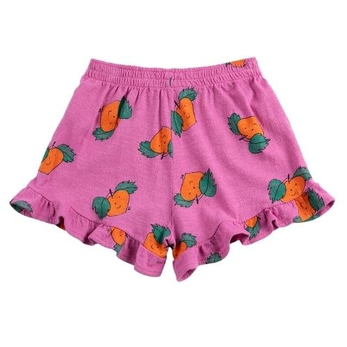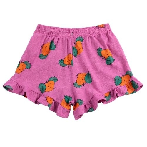 Shop de Bobo Choses tangerine all over ruffled shorts - korte broek online bij Labels for Little Ones. Deze mooie korte broek is uitgevoerd in zachte katoen in paarse kleur met tangerine all-over print met mandarijnen en heeft vrolijke ruffles bij de bro...