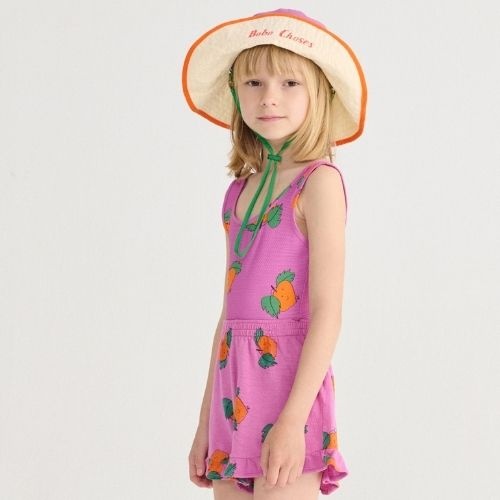 Shop de Bobo Choses tangerine all over ruffled shorts - korte broek online bij Labels for Little Ones. Deze mooie korte broek is uitgevoerd in zachte katoen in paarse kleur met tangerine all-over print met mandarijnen en heeft vrolijke ruffles bij de broekspijp. Een comfortabele short door de fijne pasvorm en zachte biologische katoenen stof.
