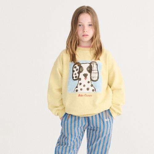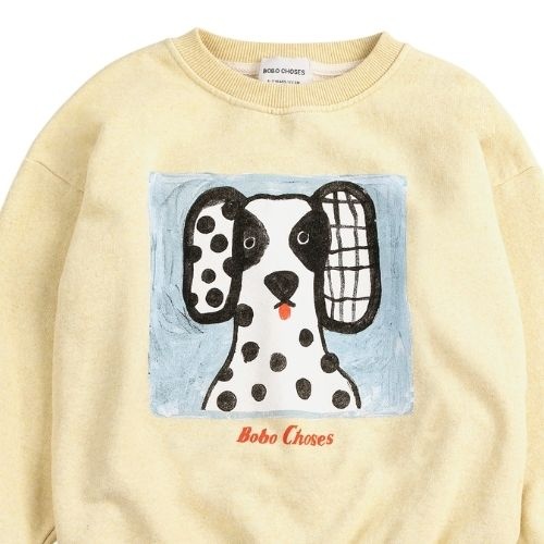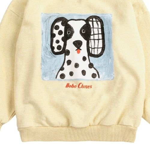 Shop de Bobo Choses Van Dog sweatshirt online bij Labels for Little Ones. Deze vrolijke sweater is uitgevoerd in een lichtgele kleur met op de voorkant een grote grappige print van een hondje en tekstprint ‘Bobo Choses’. Een comfortabele trui door de fijne pasvorm en zachte biologische katoenen stof.