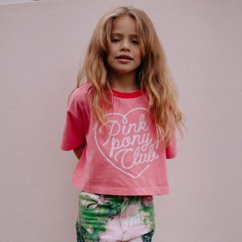Call me frankie cmf pink pony club cropped t-shirt