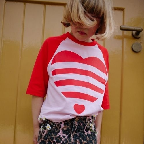 Call me frankie cmf striped heart cropped t-shirt