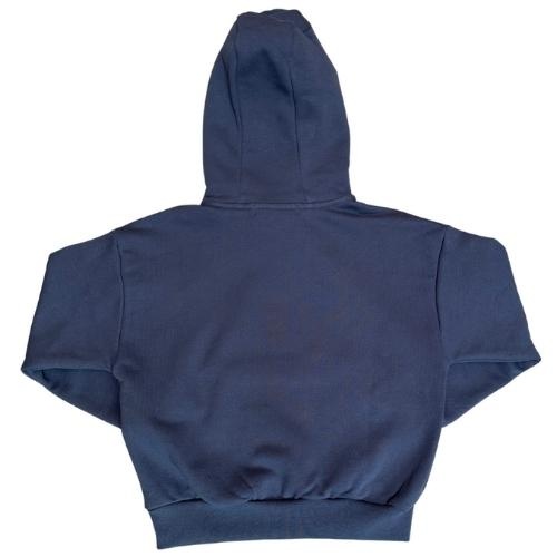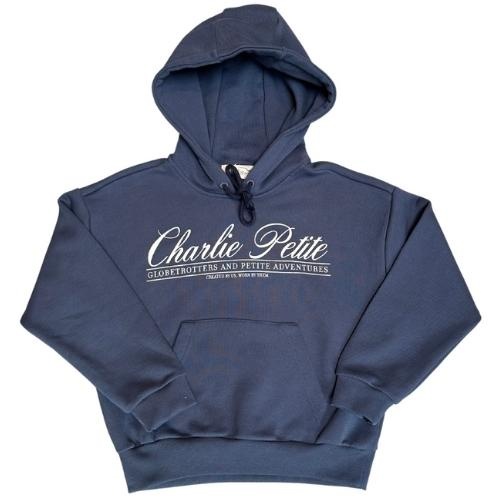 Shop de Charlie Petite indi sweater denim blue trui online bij Labels for Little Ones. Deze toffe trui met capuchon is uitgevoerd in een blauwe kleur denim blue en heeft op de voorkant een grote witte print met daaronder een buidelzak. De hoodie is oversi...