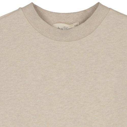 Shop de Charlie Petite jones sweater beige melange trui online bij Labels for Little Ones. Deze mooie trui van zachte sweatstof is uitgevoerd in een lichte beige kleur en heeft op de achterkant een bordeauxrode tekstprint ‘charlie’. De sweater heeft elastische boorden bij de halslijn, manchetten en zoom. Door de zachte biologische katoen en fijne pasvorm heeft deze trui een comfortabele fit. Combineer met een shorts, jeans of jogger.