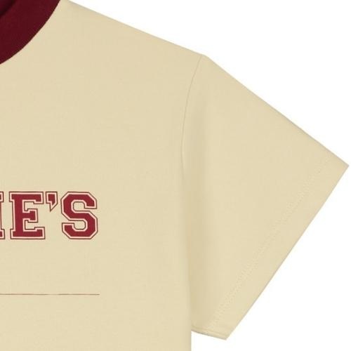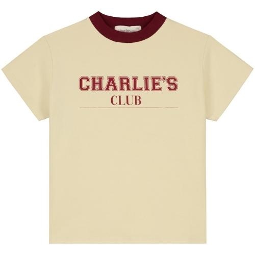 Shop de Charlie Petite leon t-shirt cream bordeaux tee online bij Labels for Little Ones. Dit mooie shirt met korte mouwen is uitgevoerd in een zachte gele kleur met een bordeauxrode tekstprint op de voorkant. De tee heeft een bordeauxrode geribde halslij...