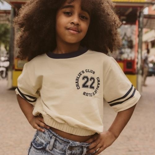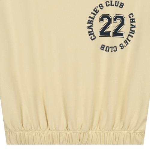 Shop de Charlie Petite lianne t-shirt indigo cream tee online bij Labels for Little Ones. Dit mooie shirt met korte mouwen is uitgevoerd in een zachte gele kleur met een donkerblauwe print op de borst en tekstprint op de rug. De top heeft een donkerblauwe...