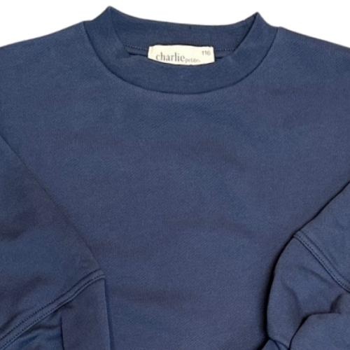 Shop de Charlie Petite nada sweater dress denim blue jurk online bij Labels for Little Ones. Deze stoere jurk is uitgevoerd in een blauwe kleur denim blue en heeft op de rug een grote rood/witte tekstprint ‘Charlie’. De sweaterdress heeft een oversized pasvorm met verlaagde schouders en een stiksel op de mouw als leuk detail. Door de zachte biologische katoen en fijne pasvorm heeft deze jurk een comfortabele fit.