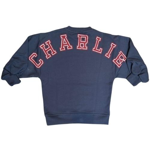 Shop de Charlie Petite nada sweater dress denim blue jurk online bij Labels for Little Ones. Deze stoere jurk is uitgevoerd in een blauwe kleur denim blue en heeft op de rug een grote rood/witte tekstprint ‘Charlie’. De sweaterdress heeft een oversized pa...