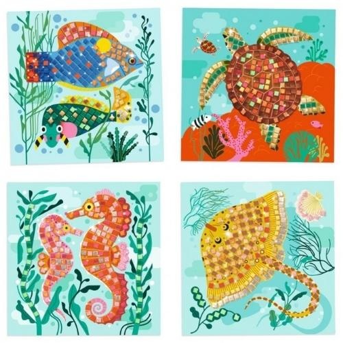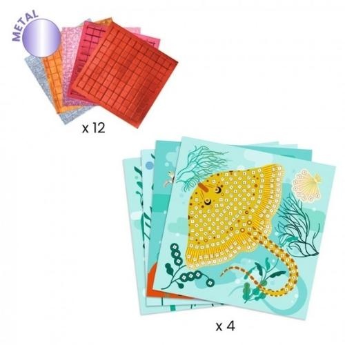 Het Djeco knutsel- en versierpakket mozaiek caribbean bestel je online bij Labels for Little Ones. Ga aan de slag met deze creatieve set, versier de kleurplaten en laat de onderwaterwereld tot leven komen. Vier kleurplaten om te versieren met kleine vierkantjes van metallic foam papier om als stickers te gebruiken. Zoek de getallen en lijm de bijbehorende stukjes op de aangewezen plaats op de kleurplaat.