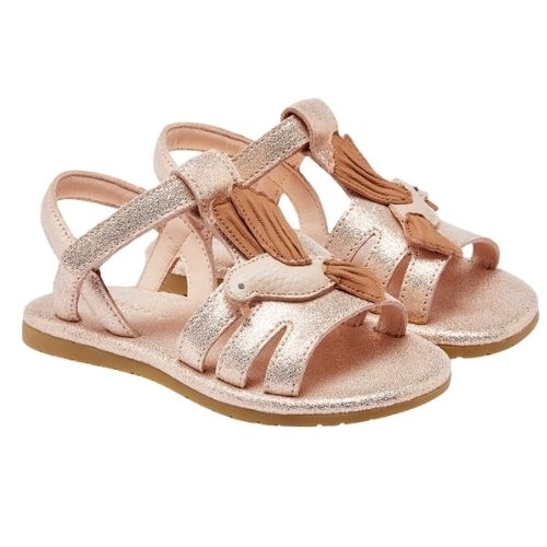 Shop de Donsje iles sky sandals hummingbird light powder metallic leather sandalen online bij Labels for Little Ones. Deze leren Donsje sandalen uitgevoerd in een lichtroze kleur powder metallic met mooi vogel kolibrie detail op de voorkant zijn handgemaa...