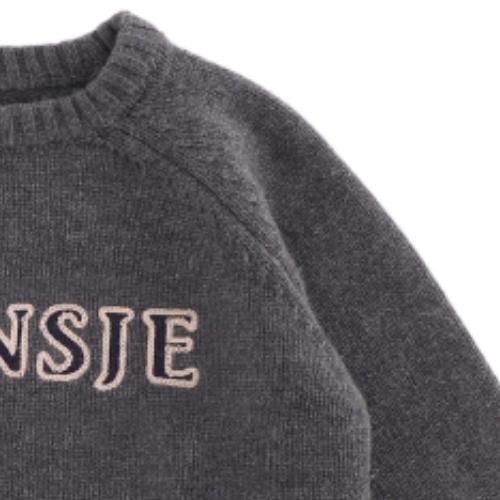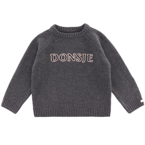 Shop de Donsje fionn merino wool sweater cloudy grey melange trui online bij Labels for Little Ones. Deze prachtige merino wollen trui is uitgevoerd in een donkergrijze kleur grey melange en heeft op de voorkant een tekst borduursel donsje. De gebreide Donsje trui heeft een comfortabele fit door de zachte stofsamenstelling van wol en fijne pasvorm.