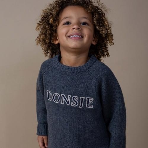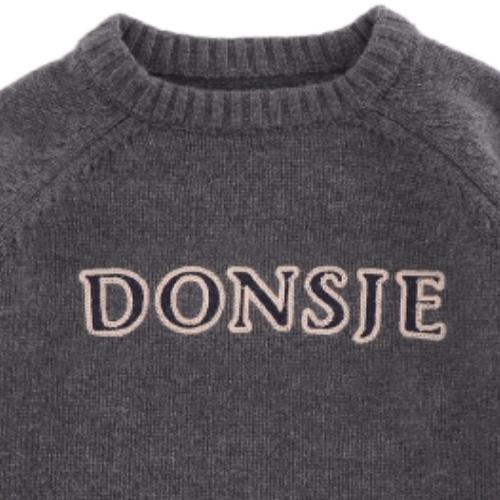 Shop de Donsje fionn merino wool sweater cloudy grey melange trui online bij Labels for Little Ones. Deze prachtige merino wollen trui is uitgevoerd in een donkergrijze kleur grey melange en heeft op de voorkant een tekst borduursel donsje. De gebreide Do...