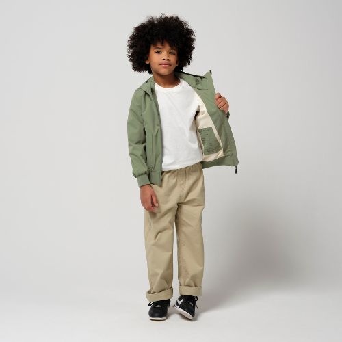 Bestel de Gosoaky blue bird jacket Oil Green jas bij Labels for Little Ones. Deze korte technische jas met capuchon is een musthave voor kinderen die lekker veel buiten zijn. Met een speciale snit van het armsgat en de mouw geeft deze jas een strakke en moderne uitstraling. Het materiaal van het favoriete model blue bird is wind- en waterdicht, maar wel ademend om de warmte te reguleren. Een fijne tussenjas voor in het voorjaar en najaar.