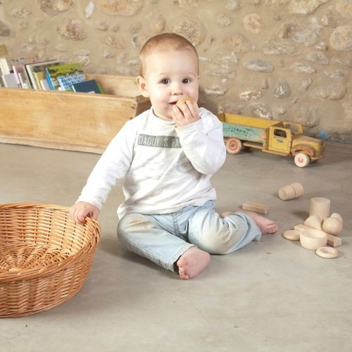 De Grapat Large Treasure basket bestaat uit 20 naturel houten vormen om te ontdekken. Met dit open eind houten speelgoed heeft je kindje uren speelplezier door op te gaan in een eigen spel, terwijl het zijn of haar creativiteit en motoriek stimuleert. Stapelen, passen, rollen, vormen leren kennen, een eigen wereld bouwen, de mogelijkheden zijn eindeloos.