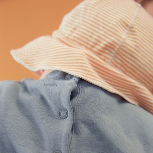 Shop het Gray Label baby sun hat gots melon - cream zonnehoedje online bij Labels for Little Ones. Dit mooie baby zonnehoedje van badstof is uitgevoerd in een gestreept dessin van oranje en gebroken witte strepen met een klein strikje. Door de zachte biologische katoen en fijne pasvorm heeft het hoedje een comfortabele fit voor je kleintje en is het hoofdje van je kindje goed beschermd tegen de zon.