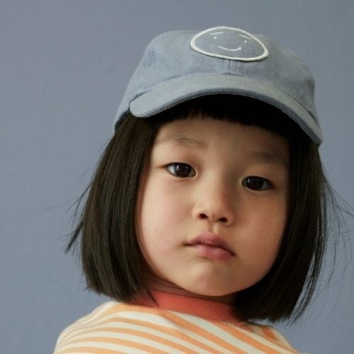 * geborduurd gezichtje op de voorkant en merknaam aan de achterkant