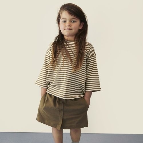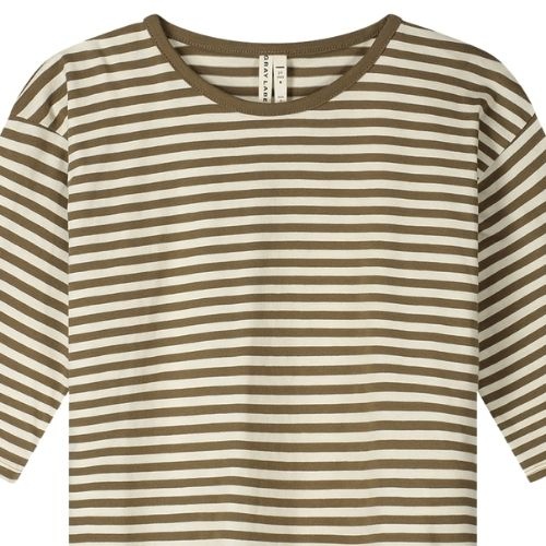Shop de Gray Label dropped shoulder tee gots woody - cream t-shirt online bij Labels for Little Ones. Dit mooie shirt met lange mouwen is uitgevoerd in een gestreept dessin van horizontale strepen in de kleuren woody en cream. Door de zachte biologische k...